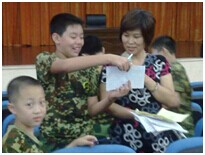 | 上午 | 国防教育:军队优良传统、军队荣誉、国防知识讲解与学习 队列训练:军姿、报数、停止间转法、敬礼、齐步、跑步训练,做一个明纪律,讲礼貌的好孩子。 |