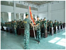 | 上午 | 军营报道:编组、内务整理,分发物资:饮用水、训练服装等。 开营仪式:统一着装列队,敬礼、奏国歌、授旗、部队首长致词、教官代表发言、亮剑营员代表发言。 |