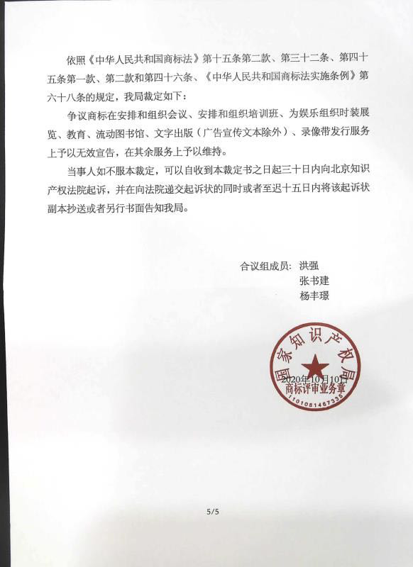 国家知识产权局对侵权商标“铁血亮剑”的裁决公告